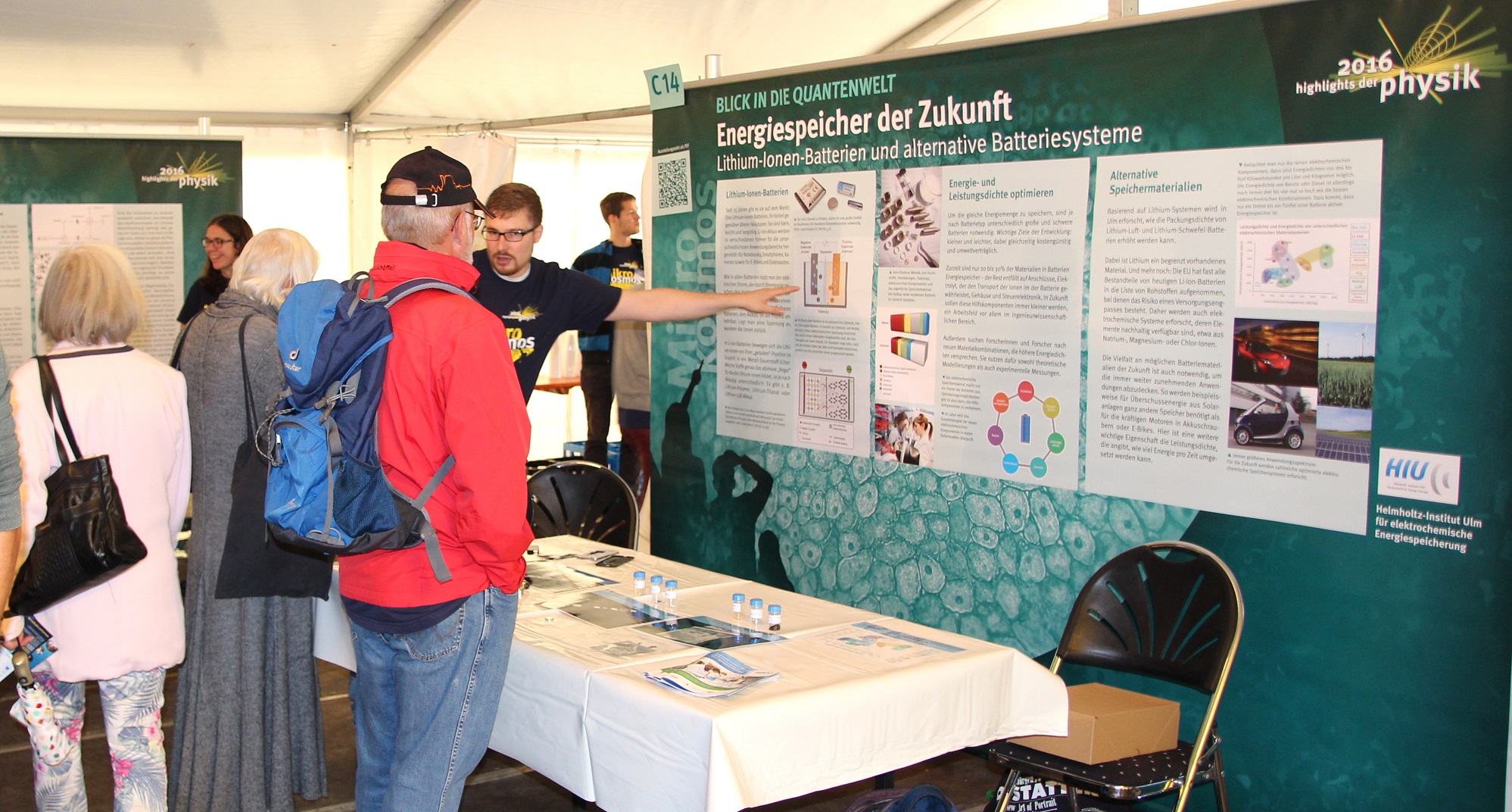 The science festival “Highlights of Physics” takes place from September 27 to October 1, under the slogan “microcosm”. The centerpiece of the event is a large interactive exhibition on the Münsterplatz in Ulm. HIU takes part with its own stand on lithium ion batteries and alternative battery systems. The exhibition is divided into three areas: “Physics and Life”, “measurement methods of bio and quantum physics” and “look into the quantum world.”
